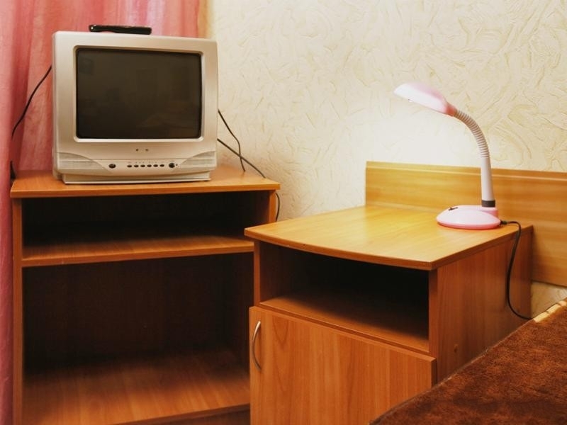 Оснащение номера: две односпальных кровати, стол, стул, тумбочки, шкаф, телевизор, доп.место - евро раскладушка