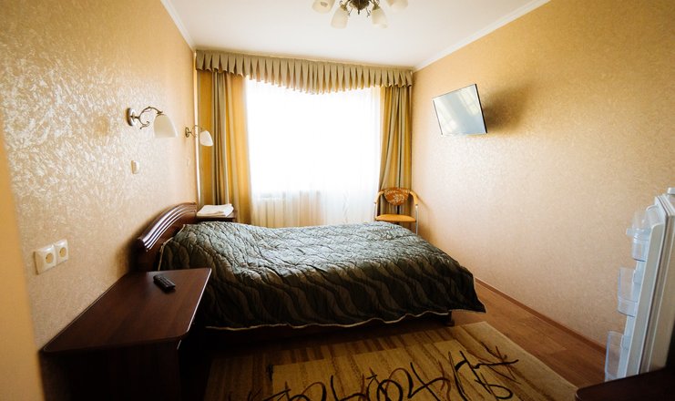 В номере: кровати односпальные или одна двуспальная, прикроватные тумбочки, стол, стул, шкаф, телевизор, холодильник, телефон, чайный набор посуды, электрочайник