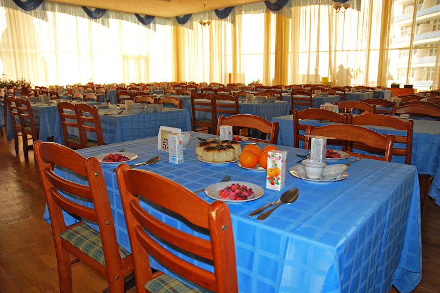 Санаторий «Парус» предоставляет своим гостям 3-х разовое питание по системе «заказное меню». Кроме этого в зале располагается шведская линия с разнообразными закусками. Меню порадует всех гостей, в том числе тех, кто прибыл на курорт с целью оздоровления. Для вас здесь предусмотрены диетические блюда. Приемы пищи проходит в просторной столовой. Поскольку зал остеклён панорамными окнами, в процессе вы сможете любоваться живописным пейзажем парка. Также на территории функционирует летнее кафе-бар, где гости смогут насладиться свежеприготовленными напитками и десертами.